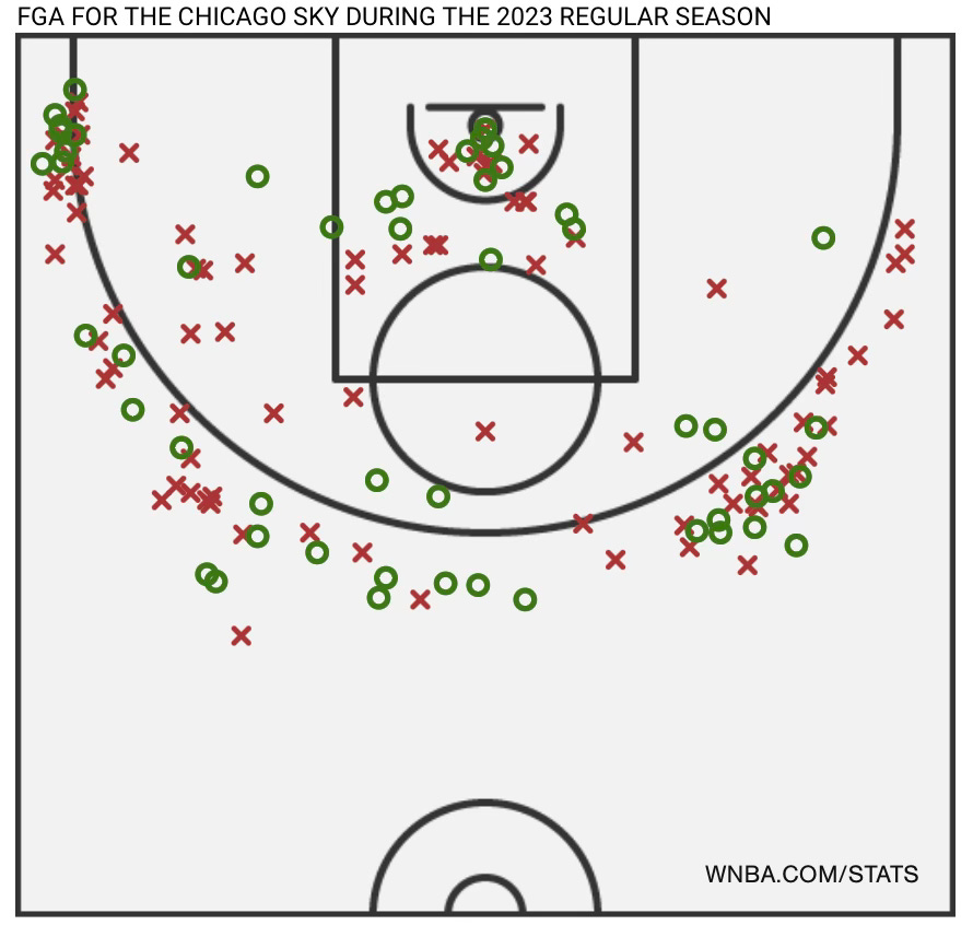 In contrast to overseas where Parks seems to get one-or-two shots per game minimum from the free-throw circle, she took just one shot there during the whole of last season—with a few others from nearby. Even if Spoon installs just one play a game that gets Parks a look from that area, the percentage she’s hitting overseas means it’s likely to produce a positive outcome more often than not. And while these types of nuances feel insignificant in the broader context of a game where teams exchange hundreds of possessions, it’s important for Chicago’s new coaching staff to understand how all of their players’ unique skillsets can be maximized to give the Sky as many avenues as possible to score.