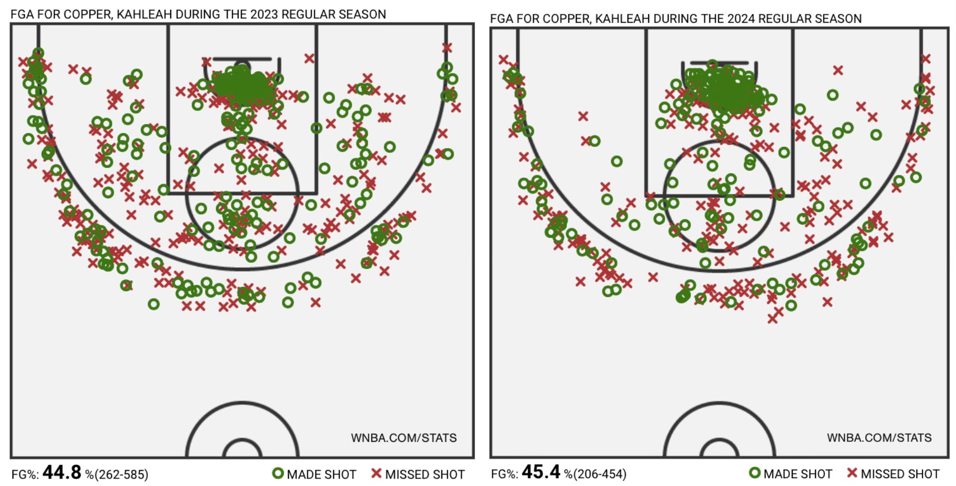 From a narrative perspective, this makes all the sense, but it’s also likely to be a critical match-up in the context of the game. After the Marina Mabrey trade last month, Onyenwere is set to slot in to the starting line-up, and she’s also one of the best equipped players in the W to guard Kahleah Copper thanks to her unique combination of size, speed and defensive tenacity. Last spring in the Turkish League, they were regularly matched up in three late-season games between Copper’s Mersin and Onyenwere’s Ormanspor and neither disappointed with their performances. Copper averaged 25.7 PPG on 61% FG while Onyewnere answered with 19.3 PPG on 64% FG. Of course, their story since then has been a bit different—with Copper putting together a solid first-team all-WNBA case in the first-half of the season (23 PPG on 45/33/81 shooting) and collecting her first Olympic gold medal in Paris. Yet, if the Sky want any hope to win either or both of this weekend’s games, they need Onyenwere to do her best to slow the one-time franchise cornerstone.